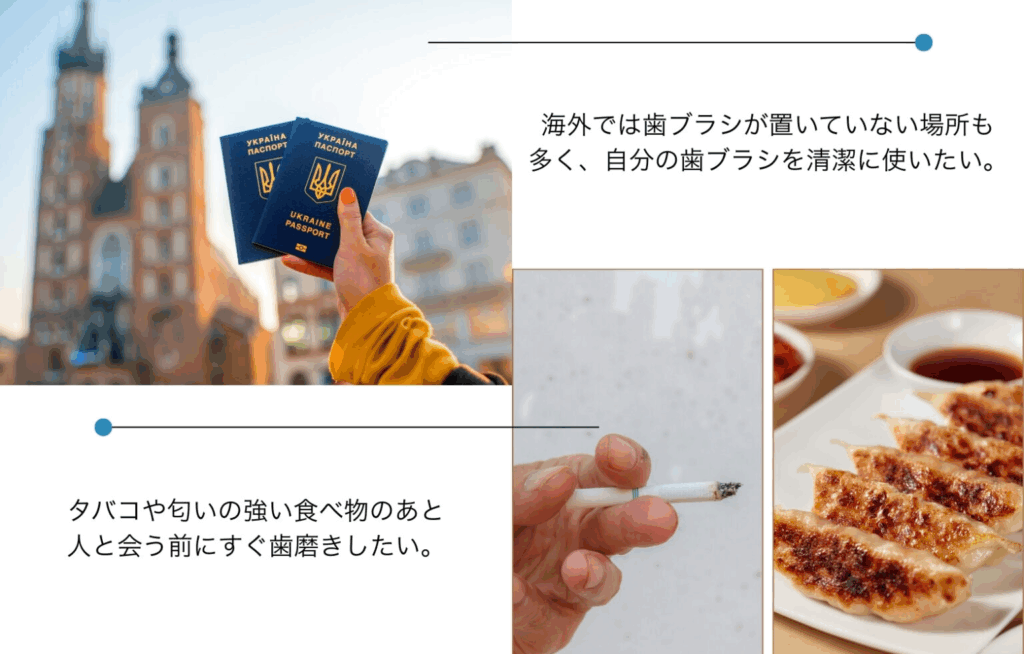 そして海外旅行や長時間の移動中でも歯磨きをしたい人にとって