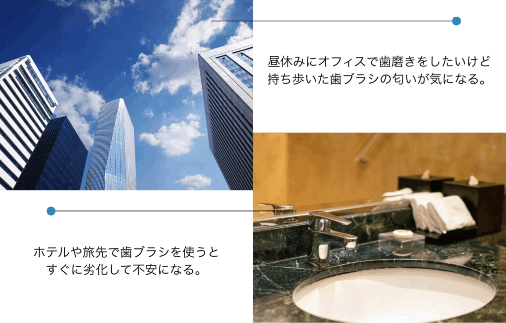 「仕事の合間に歯を磨きたいけど、持ち運びが面倒…」