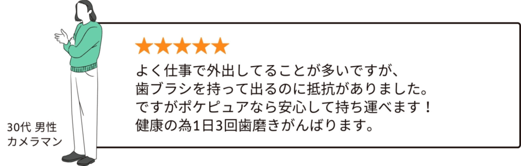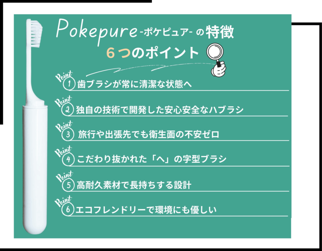 Pokepure-ポケピュア-は自宅はもちろん、出張や旅行、ランチ後の歯磨きにも清潔に持ち運べ、歯ブラシケアを通じて日々の健康を守ります。