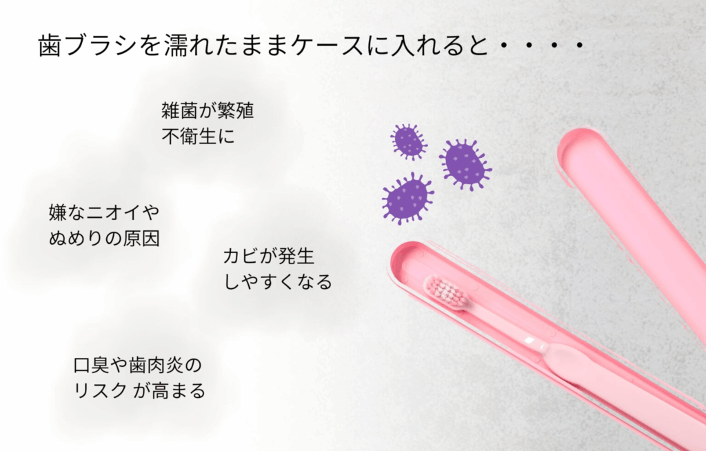 実際、歯ブラシは濡れたままケースに入れておくと雑菌が繁殖し、