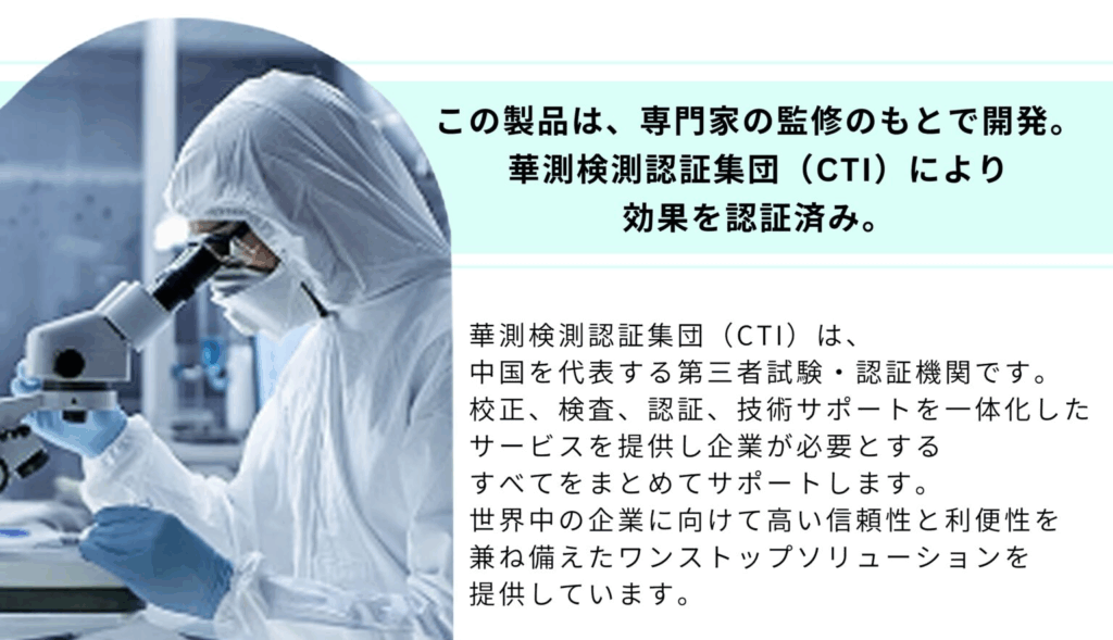 薬剤を使わず紫外線だけで除菌・抗菌できるため、安全かつ環境に優しい設計です。さらに、公的機関の試験によって効果が科学的に実証されています。