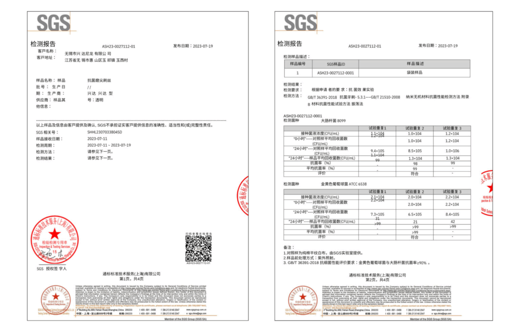 この製品は、GB/T 36391-2018の基準をクリアし、抗菌効果があると評価されました。