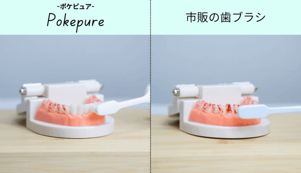 従来の歯ブラシでは届きにくい歯間や奥歯も、Pokepureなら力を入れずにスムーズに磨け、汚れをしっかり落としつつ歯にやさしい設計を目指しこだわりました。